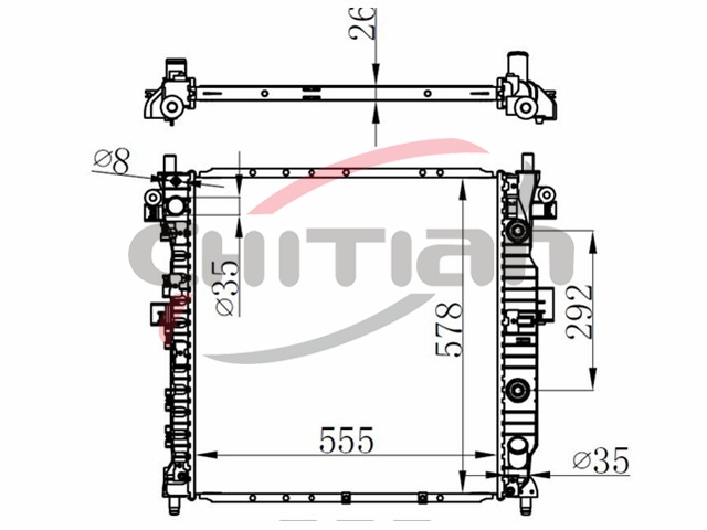 Name: RadiatorPart No.: CT-DW050Remark: Depth (mm):26Length (mm):555Transmission ():ATWidth (mm):578OEM Number