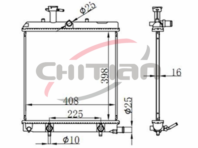 Name: RadiatorPart No.: CT-DH045Remark: Depth (mm):16Length (mm):408Transmission ():ATWidth (mm):398OEM Number