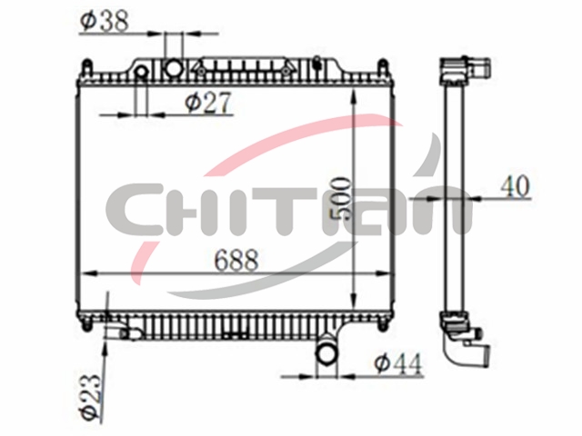 Name: RadiatorPart No.: CT-DG060Remark: Depth (mm):40Length (mm):688Transmission ():MTWidth (mm):500OEM Number
