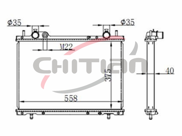 Name: RadiatorPart No.: CT-FT035Remark: Depth (mm):40Length (mm):558Transmission ():MTWidth (mm):375OEM Number
