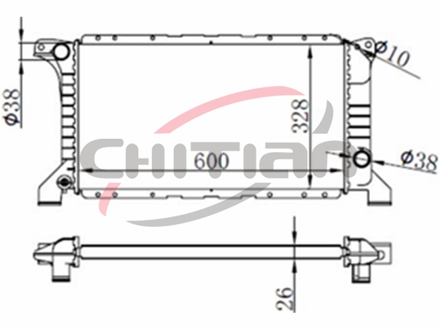 Name: RadiatorPart No.: CT-FD068Remark: Depth (mm):26Length (mm):600Transmission ():MTWidth (mm):328OEM Number