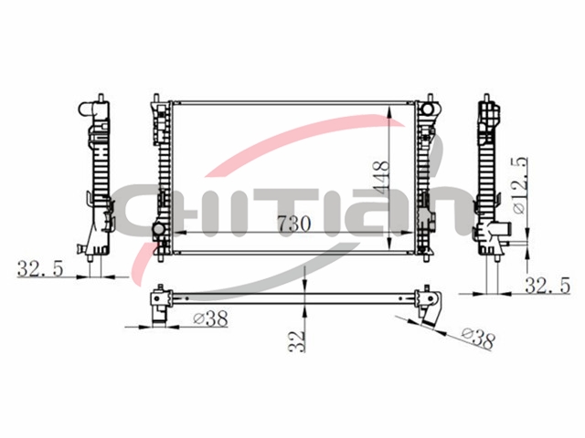 Name: RadiatorPart No.: CT-FD101Remark: Depth (mm):32Length (mm):730Transmission ():MTWidth (mm):448OEM Number