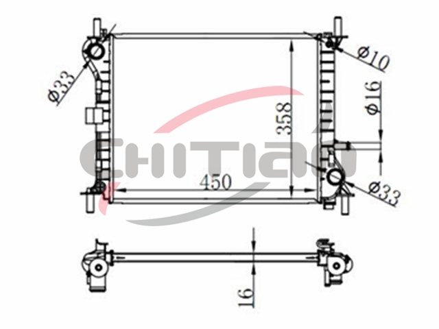 Name: RadiatorPart No.: CT-FD108Remark: Depth (mm):16Length (mm):450Transmission ():MTWidth (mm):358OEM Number