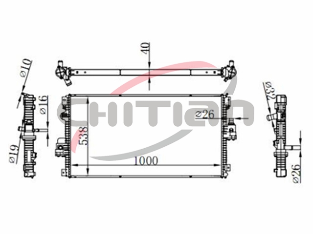 Name: RadiatorPart No.: CT-FD162Remark: Depth (mm):40Length (mm):1000Transmission ():MTWidth (mm):538OEM Number