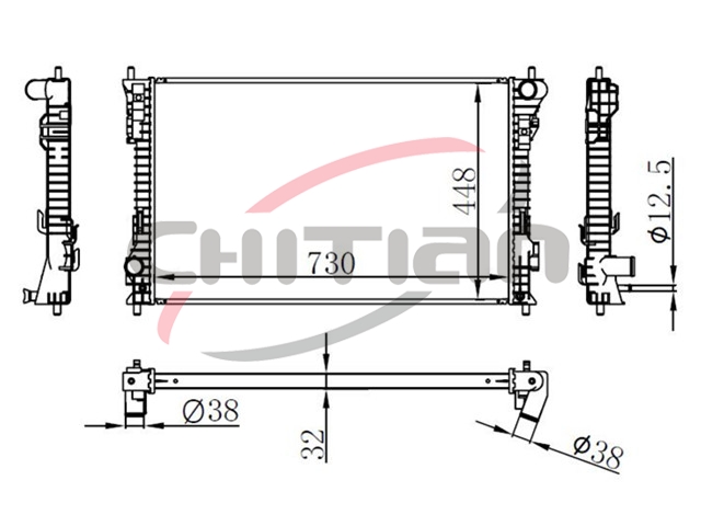 Name: RadiatorPart No.: CT-FD199Remark: Depth (mm):26Length (mm):730Transmission ():MTWidth (mm):448OEM Number