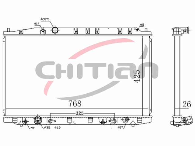 Name: RadiatorPart No.: CT-HD140Remark: Depth (mm):26Length (mm):768Transmission ():ATWidth (mm):425OEM Number