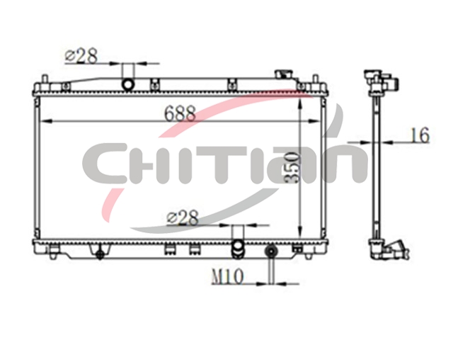 Name: RadiatorPart No.: CT-HD171Remark: Depth (mm):16Length (mm):688Transmission ():MTWidth (mm):350OEM Number