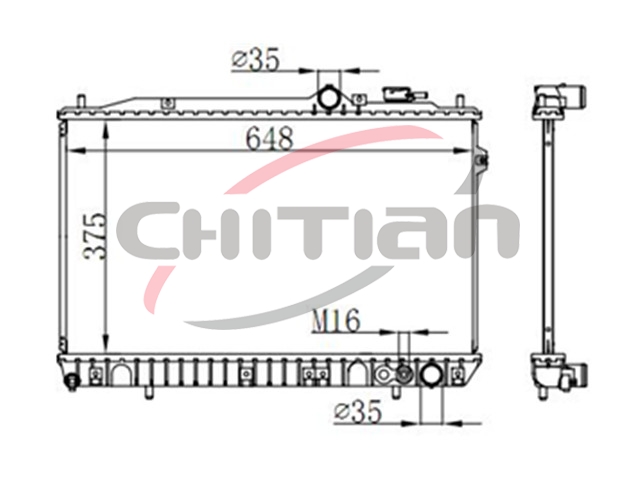 Name: RadiatorPart No.: CT-HY136Remark: Depth (mm):16Length (mm):648Transmission ():MTWidth (mm):375OEM Number