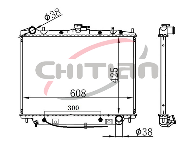 Name: RadiatorPart No.: CT-IS038Remark: Depth (mm):26Length (mm):608Transmission ():ATWidth (mm):425OEM Number