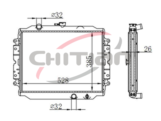Name: RadiatorPart No.: CT-IS043Remark: Depth (mm):26Length (mm):528Transmission ():MTWidth (mm):385OEM Number