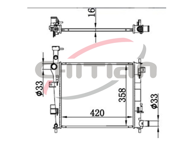 Name: RadiatorPart No.: CT-KI101Remark: Depth (mm):16Length (mm):420Transmission ():MTWidth (mm):358OEM Number