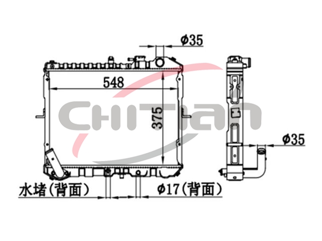 Name: RadiatorPart No.: CT-KI106Remark: Depth (mm):36Length (mm):548Transmission ():MTWidth (mm):375OEM Number