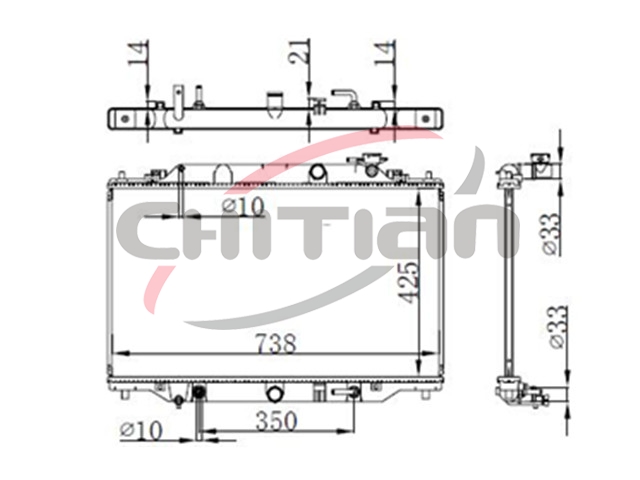 Name: RadiatorPart No.: CT-MZ061Remark: Depth (mm):16Length (mm):738Transmission ():ATWidth (mm):425OEM Number