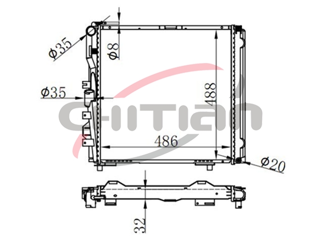 Name: RadiatorPart No.: CT-MD141Remark: Depth (mm):32Length (mm):488Transmission ():MTWidth (mm):486OEM Number