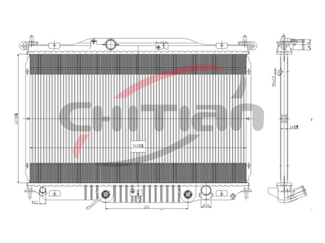 Name: RadiatorPart No.: CT-MD152Remark: Depth (mm):26Length (mm):768Width (mm):457OEM Number