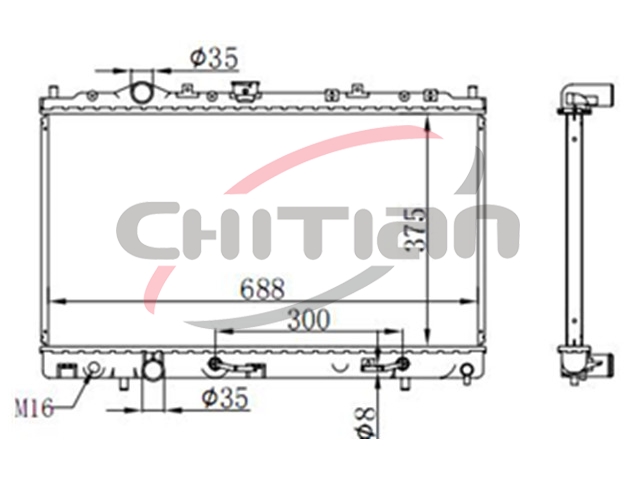 Name: RadiatorPart No.: CT-MB199Remark: Depth (mm):16Length (mm):688Transmission ():ATWidth (mm):375OEM Number