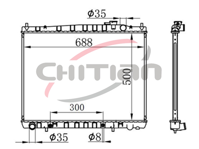 Name: RadiatorPart No.: CT-NS107Remark: Depth (mm):16Length (mm):688Transmission ():ATWidth (mm):500OEM Number