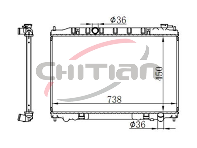 Name: RadiatorPart No.: CT-NS318Remark: Depth (mm):16Length (mm):738Transmission ():MTWidth (mm):450OEM Number