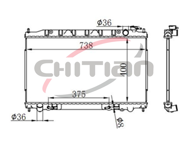 Name: RadiatorPart No.: CT-NS327Remark: Depth (mm):16Length (mm):738Transmission ():ATWidth (mm):400OEM Number