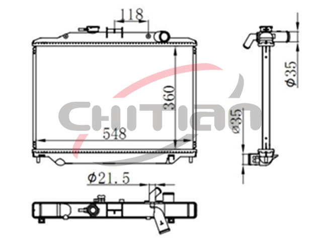 Name: RadiatorPart No.: CT-NS332Remark: Depth (mm):26Length (mm):548Transmission ():MTWidth (mm):360OEM Number