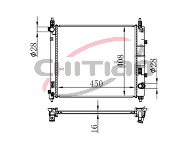 Name: RadiatorPart No.: CT-NS344Remark: Depth (mm):16Length (mm):450Transmission ():MTWidth (mm):408OEM Number