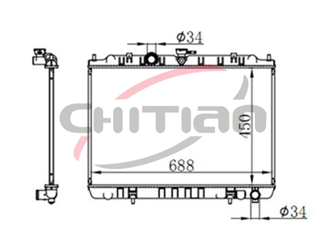 Name: RadiatorPart No.: CT-NS345Remark: Depth (mm):16Length (mm):688Transmission ():MTWidth (mm):450OEM Number