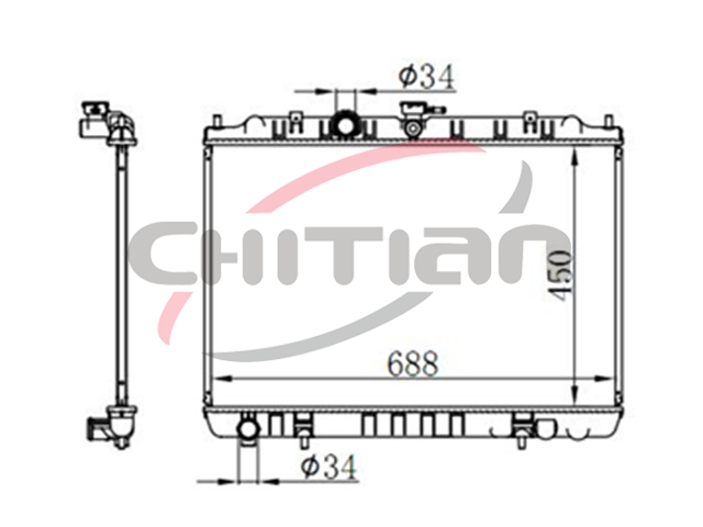 Name: RadiatorPart No.: CT-NS356Remark: Depth (mm):16Length (mm):688Transmission ():MTWidth (mm):450OEM Number