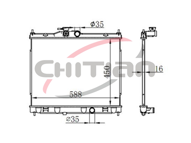 Name: RadiatorPart No.: CT-NS357Remark: Depth (mm):16Length (mm):588Transmission ():MTWidth (mm):450OEM Number