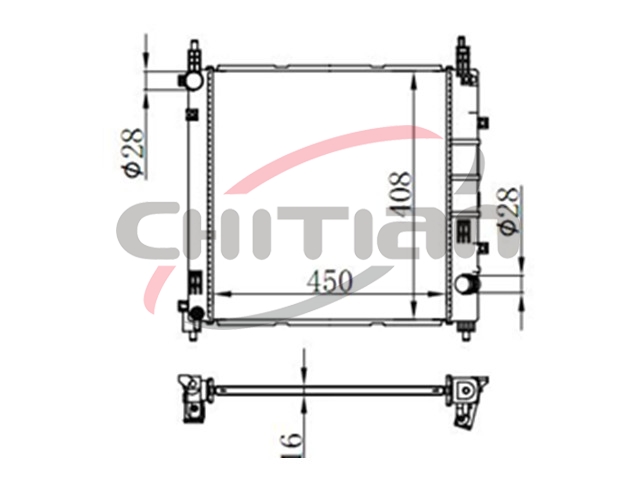 Name: RadiatorPart No.: CT-NS359Remark: Depth (mm):16Length (mm):450Transmission ():MTWidth (mm):408OEM Number
