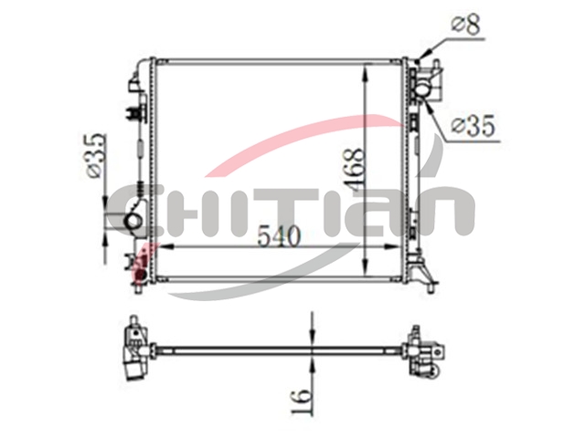 Name: RadiatorPart No.: CT-NS381Remark: Depth (mm):16Length (mm):540Transmission ():MTWidth (mm):468OEM Number
