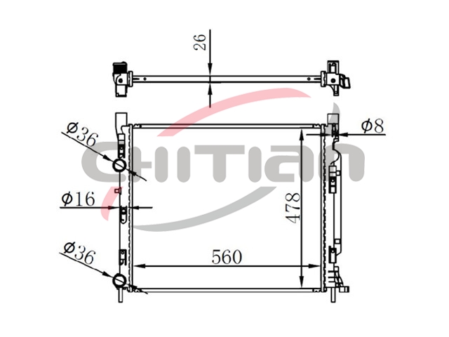 Name: RadiatorPart No.: CT-RN043Remark: Depth (mm):18Length (mm):560Transmission ():MTWidth (mm):478OEM Number