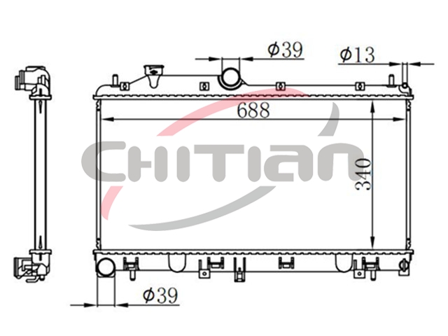 Name: RadiatorPart No.: CT-SB008Remark: Depth (mm):16Length (mm):688Transmission ():MTWidth (mm):340OEM Number