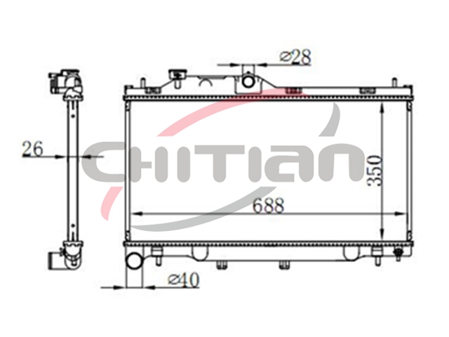 Name: RadiatorPart No.: CT-SB058Remark: Depth (mm):16Length (mm):688Transmission ():MTWidth (mm):340OEM Number