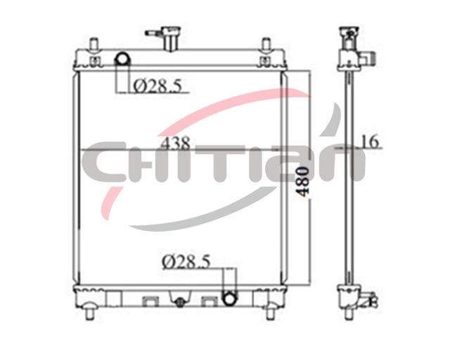 Name: RadiatorPart No.: CT-SZ061Remark: Depth (mm):26Length (mm):480Transmission ():MTWidth (mm):438OEM Number