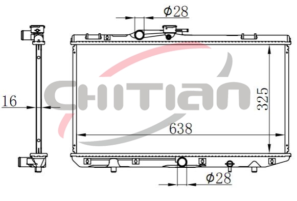 Name: RadiatorPart No.: CT-TY528Remark: Depth (mm):16Length (mm):638Transmission ():MTWidth (mm):325OEM Number