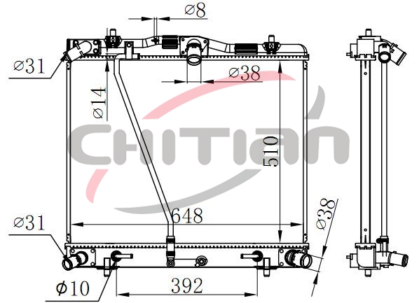 Name: RadiatorPart No.: CT-TY548Remark: Depth (mm):32Length (mm):658Transmission ():ATWidth (mm):510OEM Number