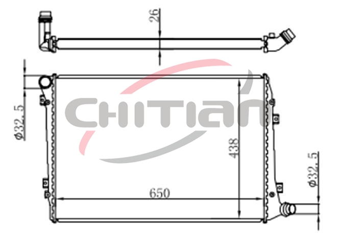 Name: RadiatorPart No.: CT-VW074Remark: Depth (mm):26Length (mm):650Transmission ():MTWidth (mm):438OEM Number